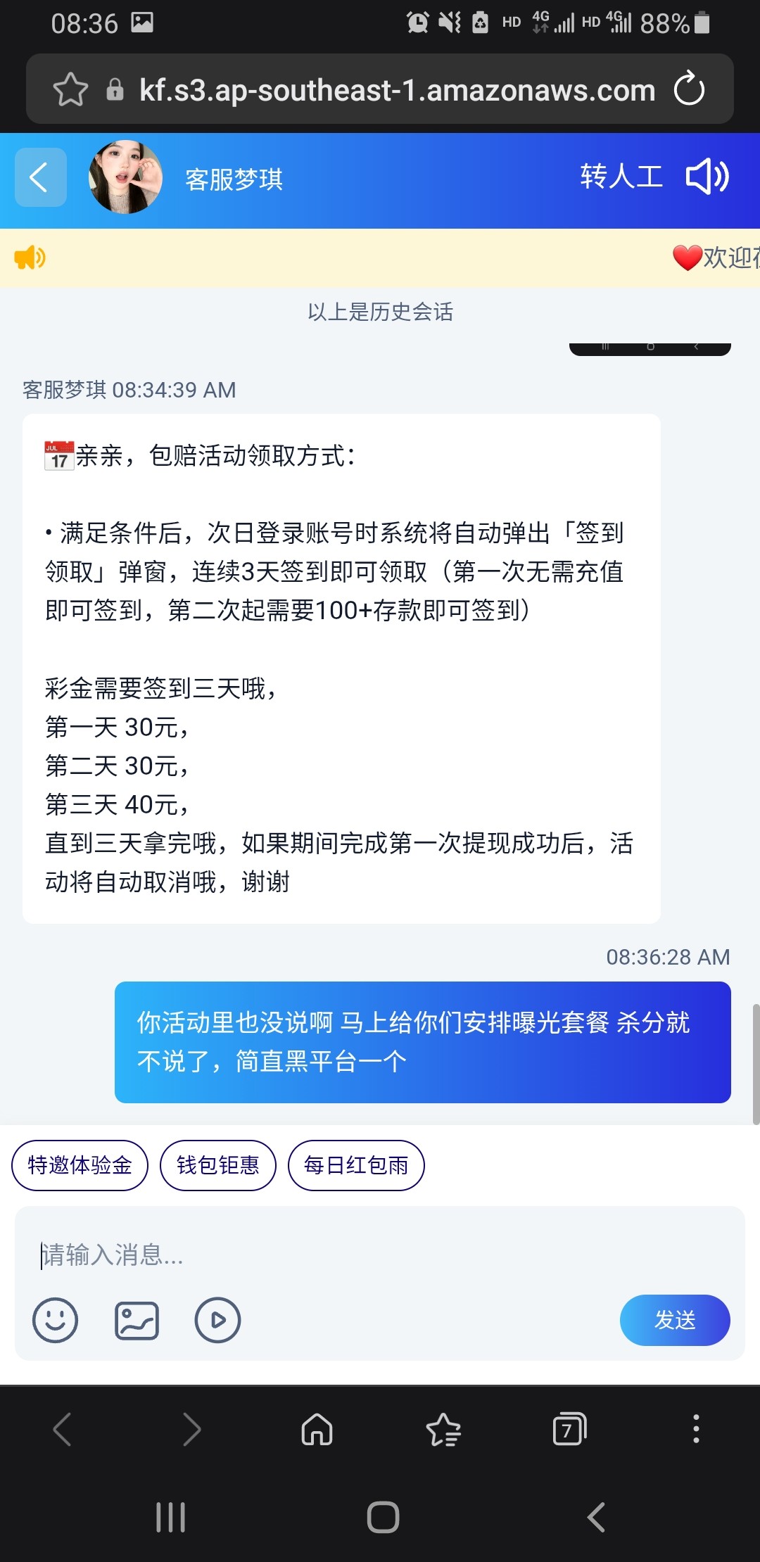 万濠国际是跑路了吗 刚刚充值半个小时 金额没有到账 客服也打不开 服了