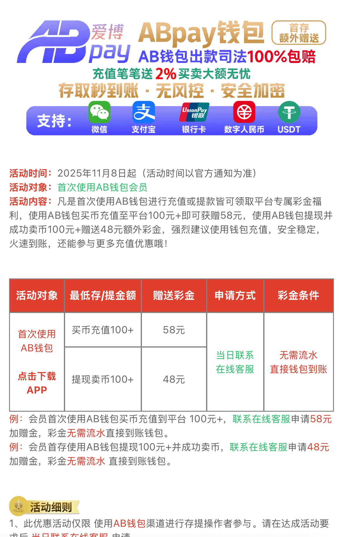 这是AB钱包的活动跟巴黎人网站无关