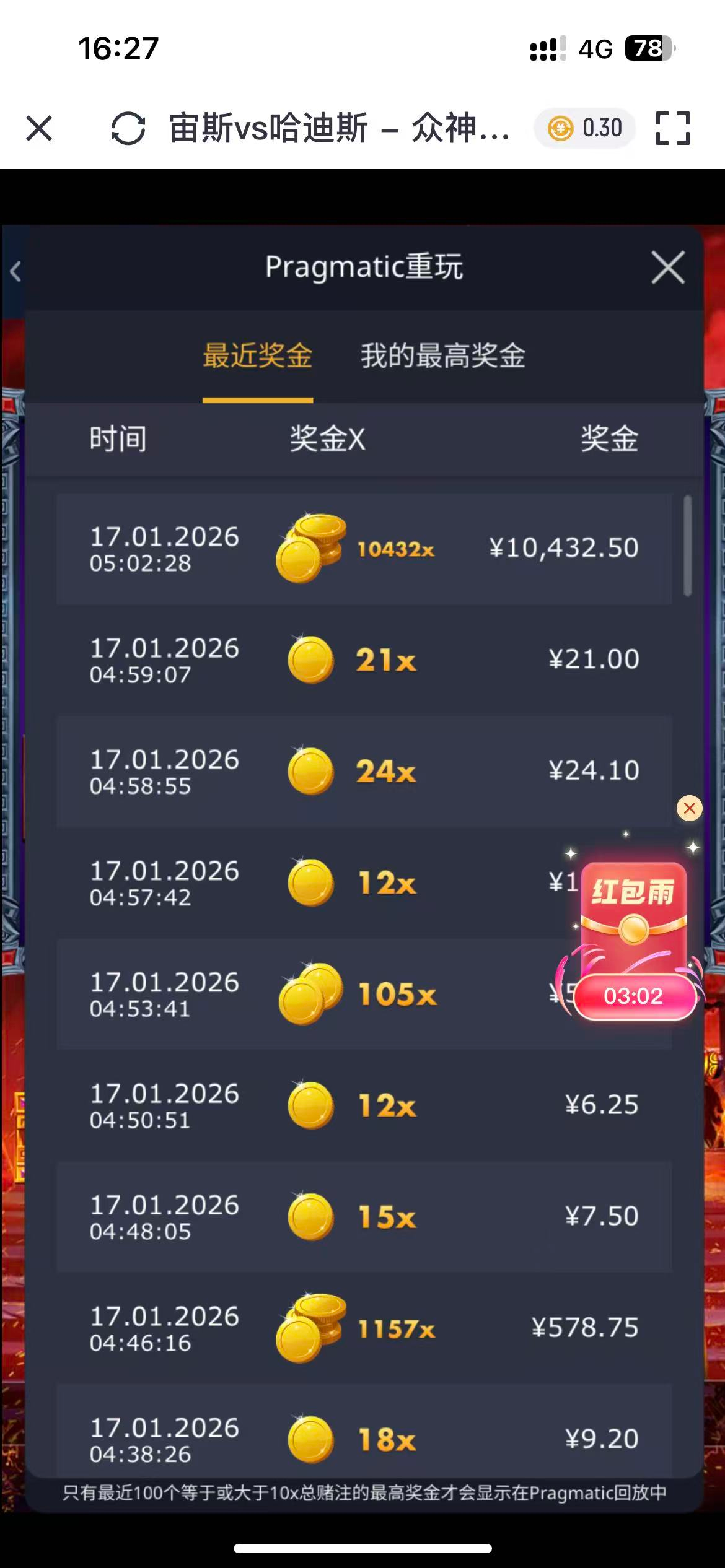 重播,pp玩不了大注感觉基本都是死的,我也是看他们天天发万倍万倍,偶尔去玩玩,那天打完比赛有500左右,去搞pp一直0.5自动拉,中间加到1块,没多久爆出来了,以后可能不玩pp了,爆过就行了