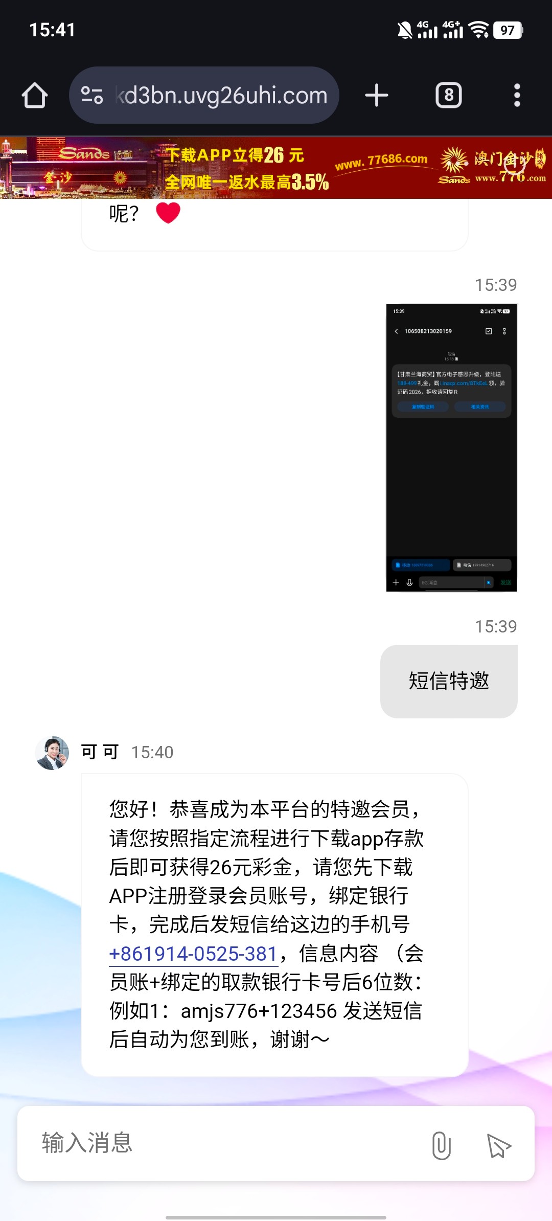 我之前领过了 现在特邀重置了 发信息到发活动里面那个号码 自己给截图客服申请