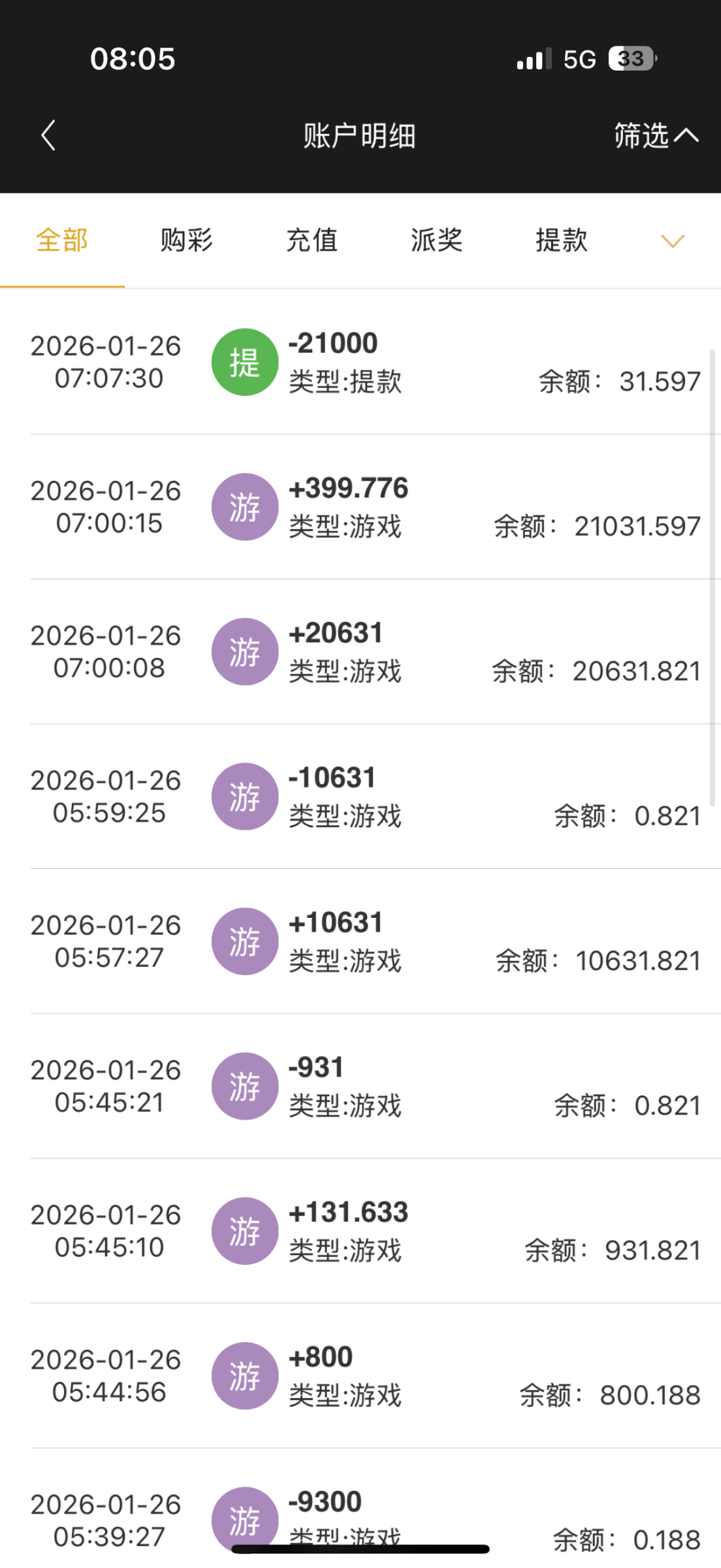 下了俩个之后又想玩,又充了2.7w进去,输的还有最后800又打上去2w,今天又少赚7k,可惜了