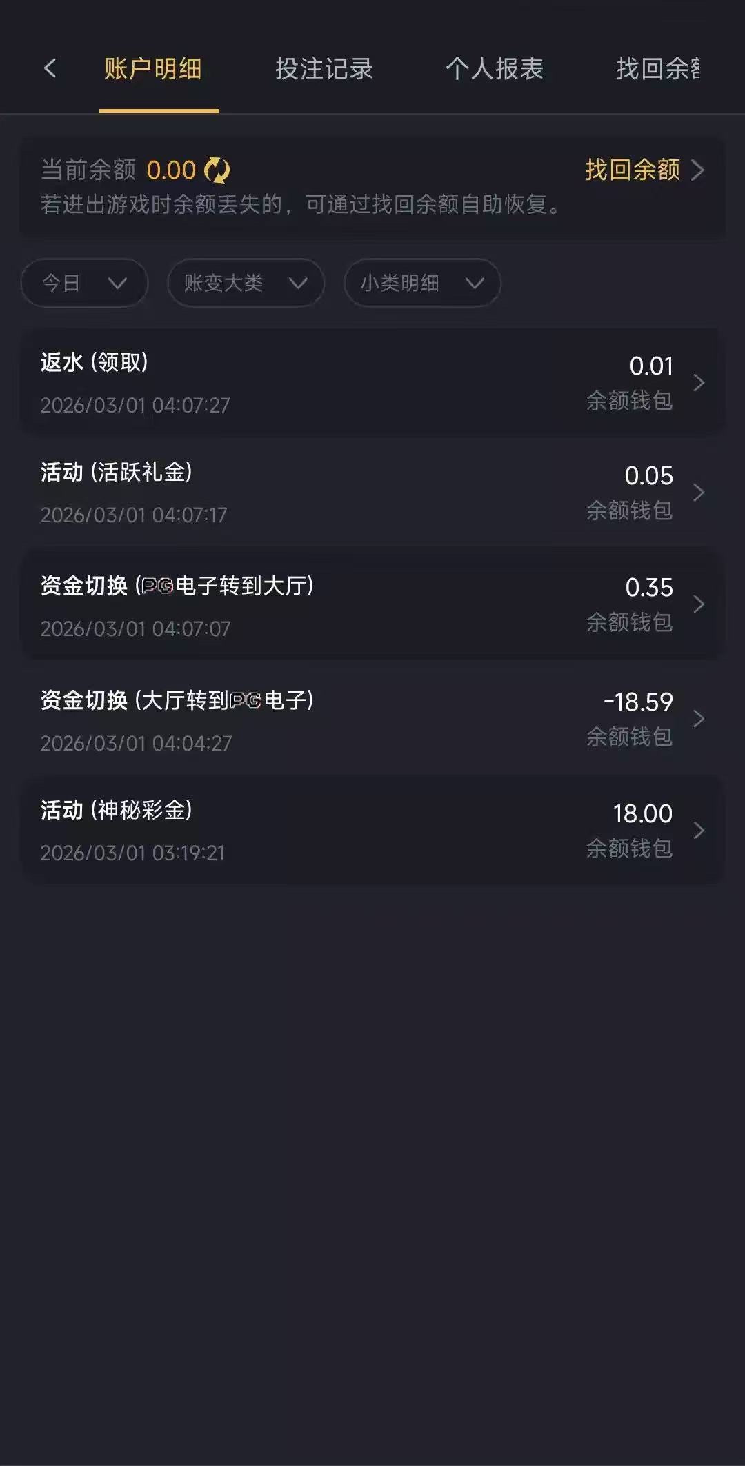 出款情况:自测(