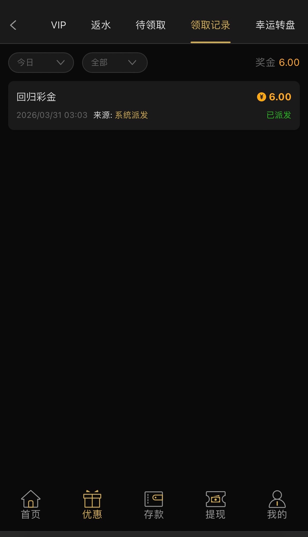 722金沙回归彩金,领了6块,有号的登录看一眼