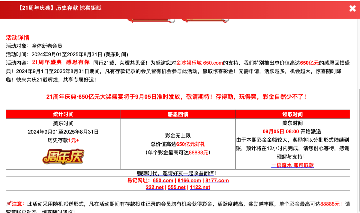 金沙650周年庆历史存款存过款的人去看看早上6点钟开始送 地址 650.com