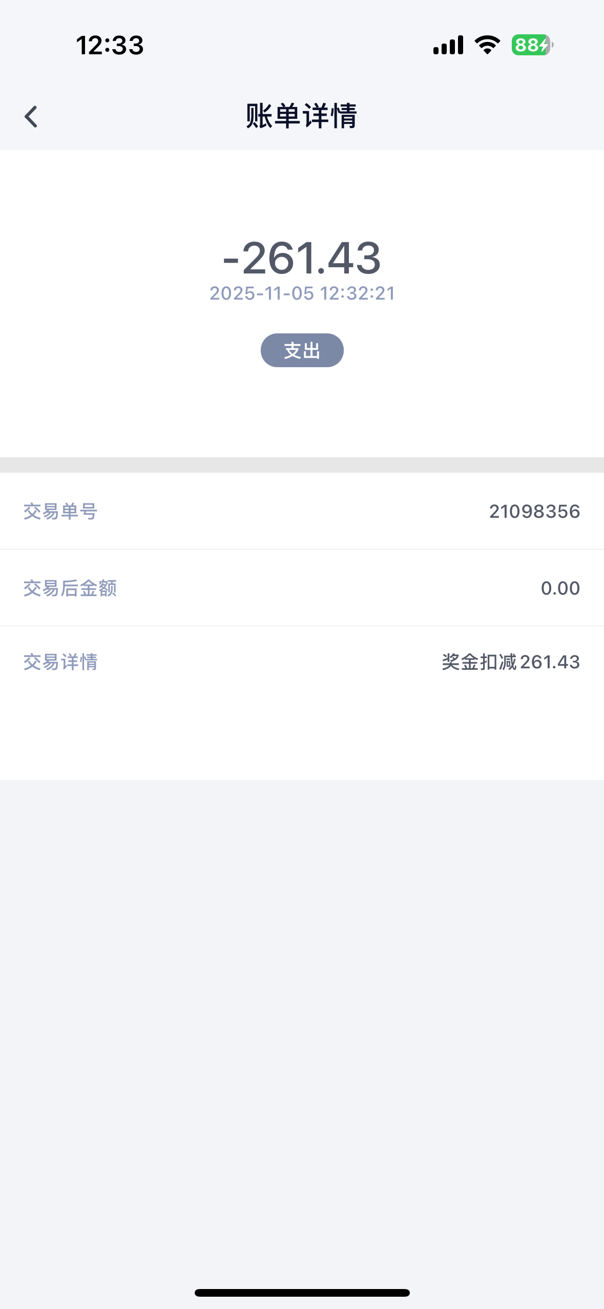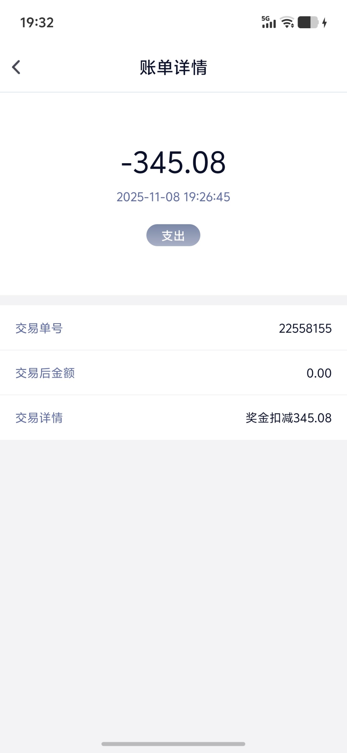 没钱了,全扣除了