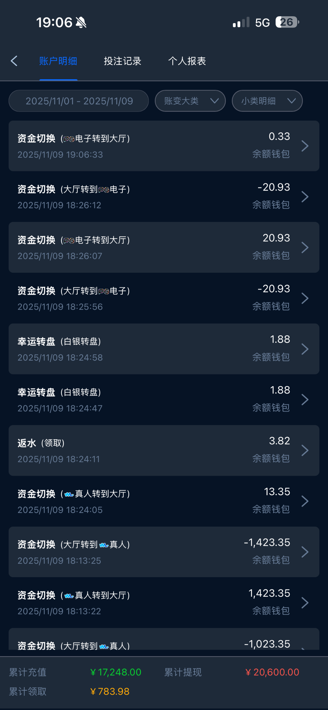 358853能不能再送点彩金这个号充值了两万流水打了十一万 输了好几千了