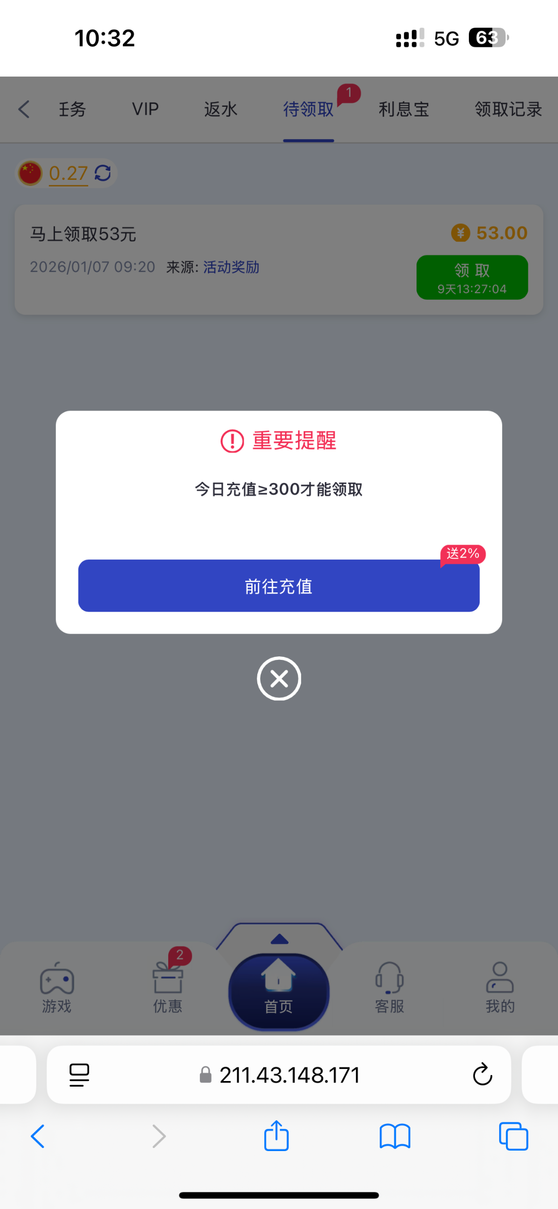 登录优惠自助领取老用户充值的都有